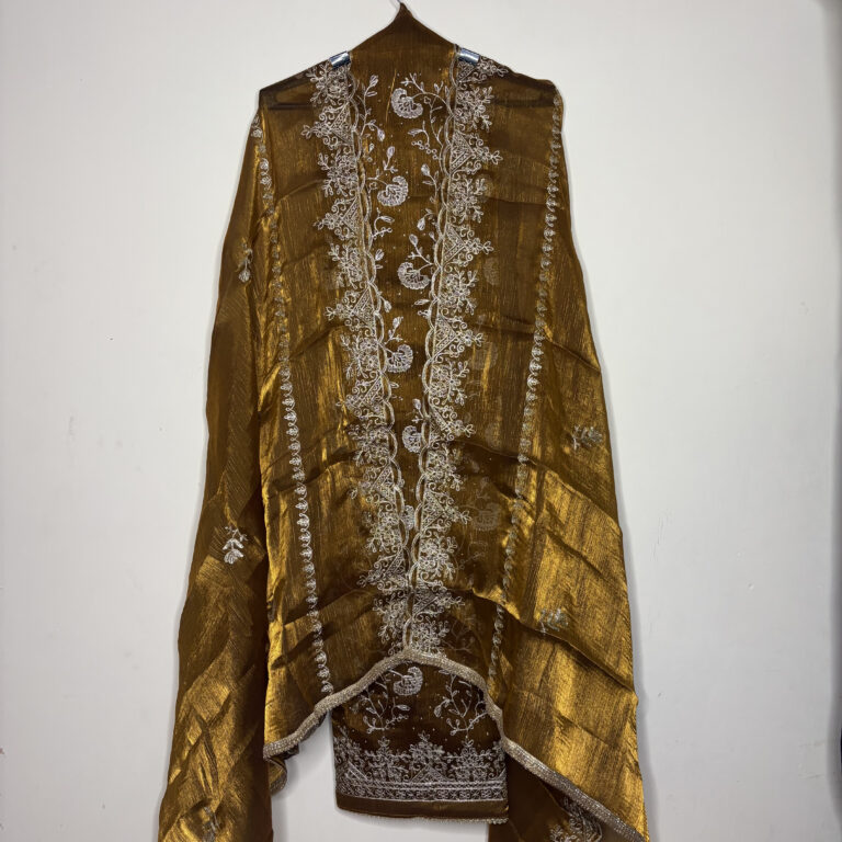 “Soft pastel pink Punjabi suit beautifully crafted with delicate floral embroidery and golden lace finishing. Comes with a lightweight flowy dupatta for a graceful traditional look. Perfect for festive wear, parties, and elegant daytime events.” Quality